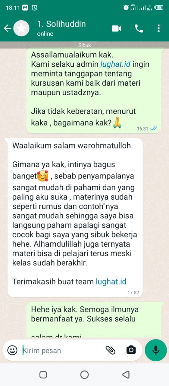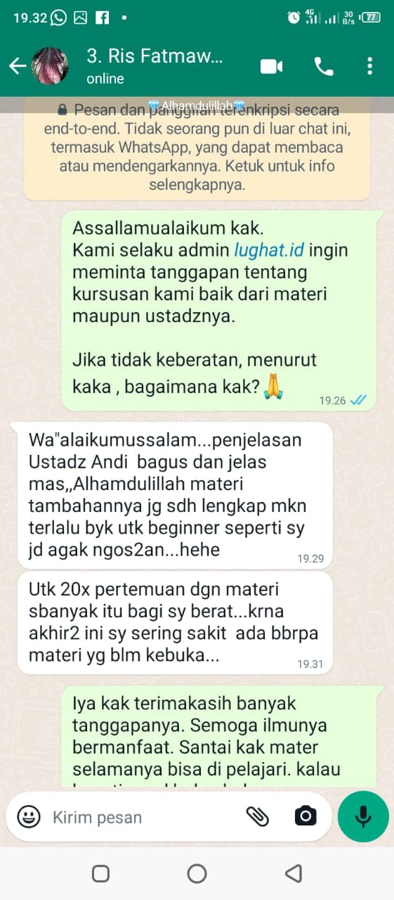 Peserta akan dimasukkan ke grup Whatsapp dengan tutor pengajar. Konsultasi & Tanya jawab jadi lebih enak.