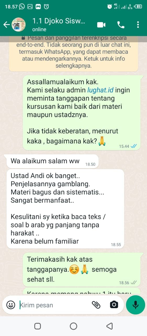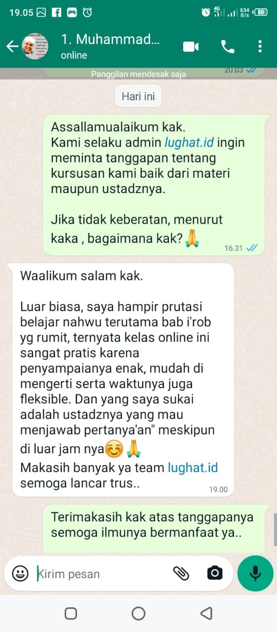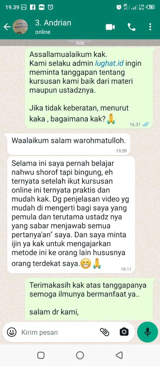 Biaya kelas Nahwu Shorof ini adalah sebesar Rp. 200.000